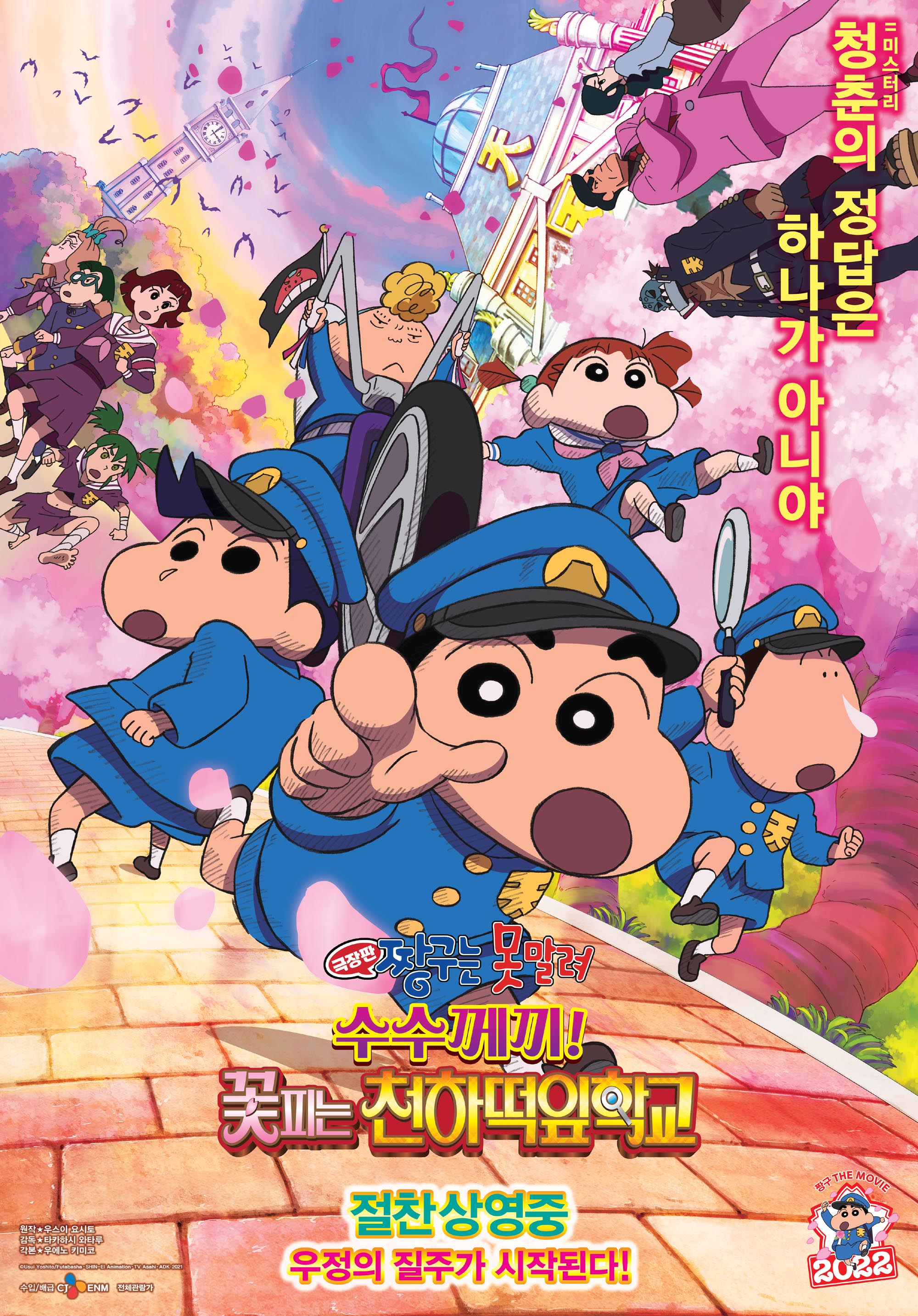 극장판 짱구는 못말려: 수수께끼! 꽃피는 천하떡잎학교는 학교 안에서 사랑에 빠지거나 실패하면서 좌절한 학생들의 모습 등 우리들의 어린 시절 누구나 고민할 수 있는 여러 상황을 그려내고 있습니다. 친구들과 오래도록 함께하고 싶은 철수의 마음과 그러나 엘리트의 길을 걷고자 친구들을 뒤로하고 그럼에도 불구하고 친구라는 이름으로 포기할 수 없는 떡잎마을 방범대 친구들의 우정을 성인이 된 지금의 시선으론 유치하다고 할 순 있지만 어린 시절의 나로 돌아간다면 정말 와닿는 우정을 나타낸 것 같아 마음이 따뜻했습니다. 또한 이번 시리즈는 추리물 장르로 정체모를 흡덩귀의 정체를 밝혀가는 재미도 있었습니다. 어렸을 적 코난 탐정 시리즈를 봤던 기억도 나고 그랬네요. 이번 극장판은 성인들도 충분히 재미있게 감상할 수 있는 작품인 것 같습니다. 추억을 떠올리며 짱구를 보시러 가는 것도 추천해 드려봅니다!