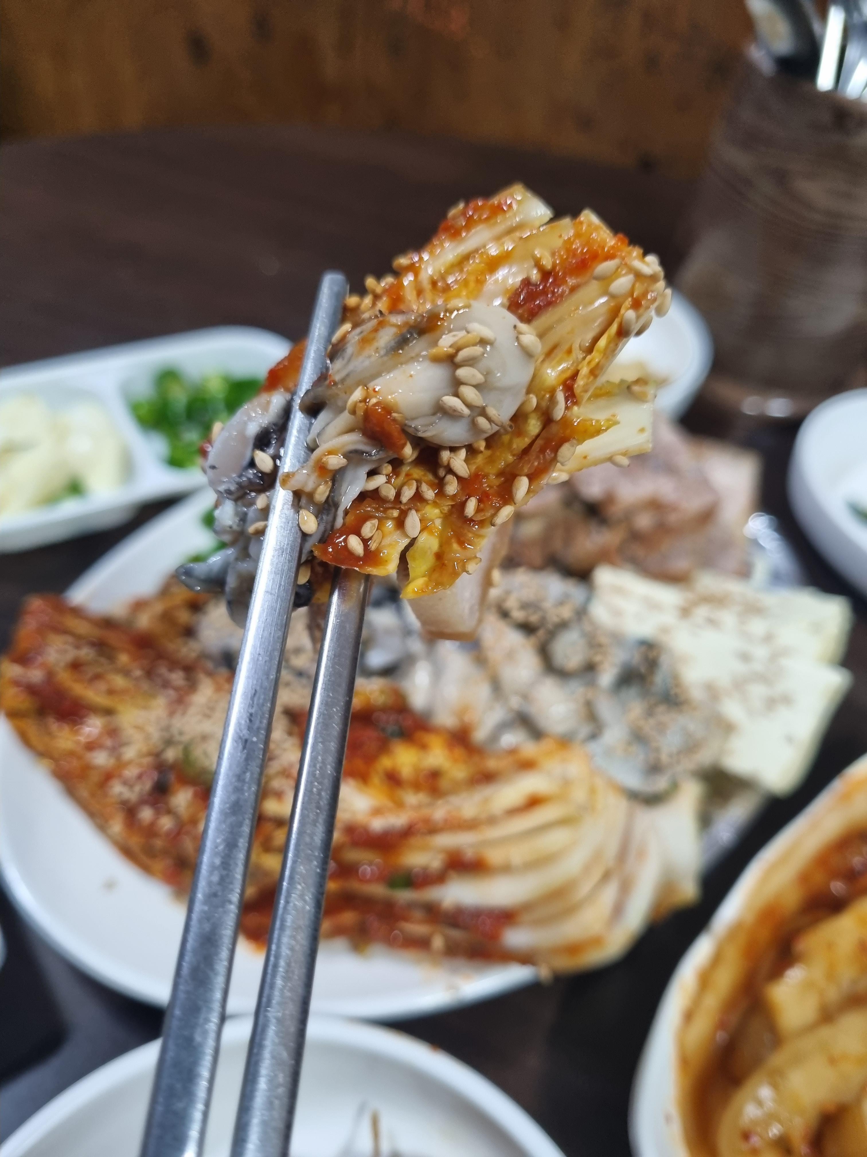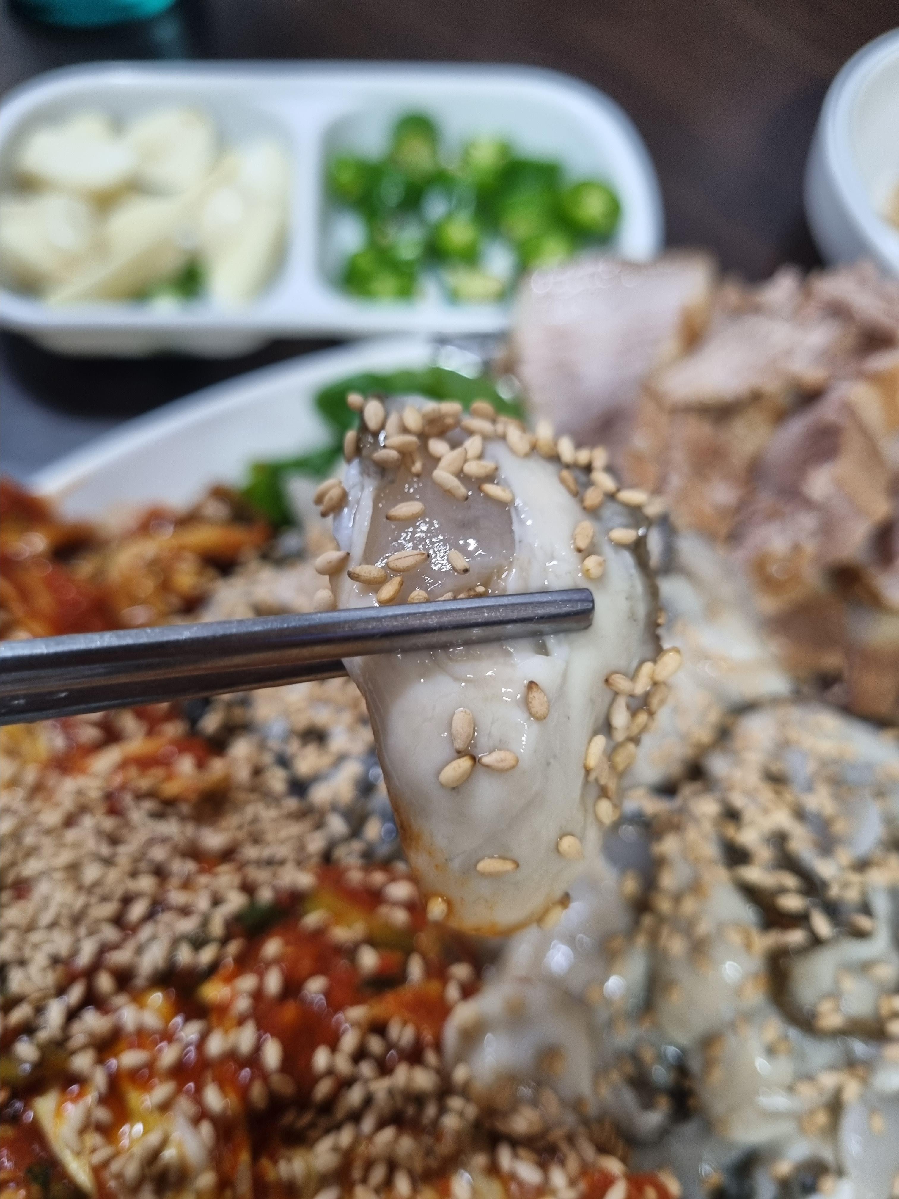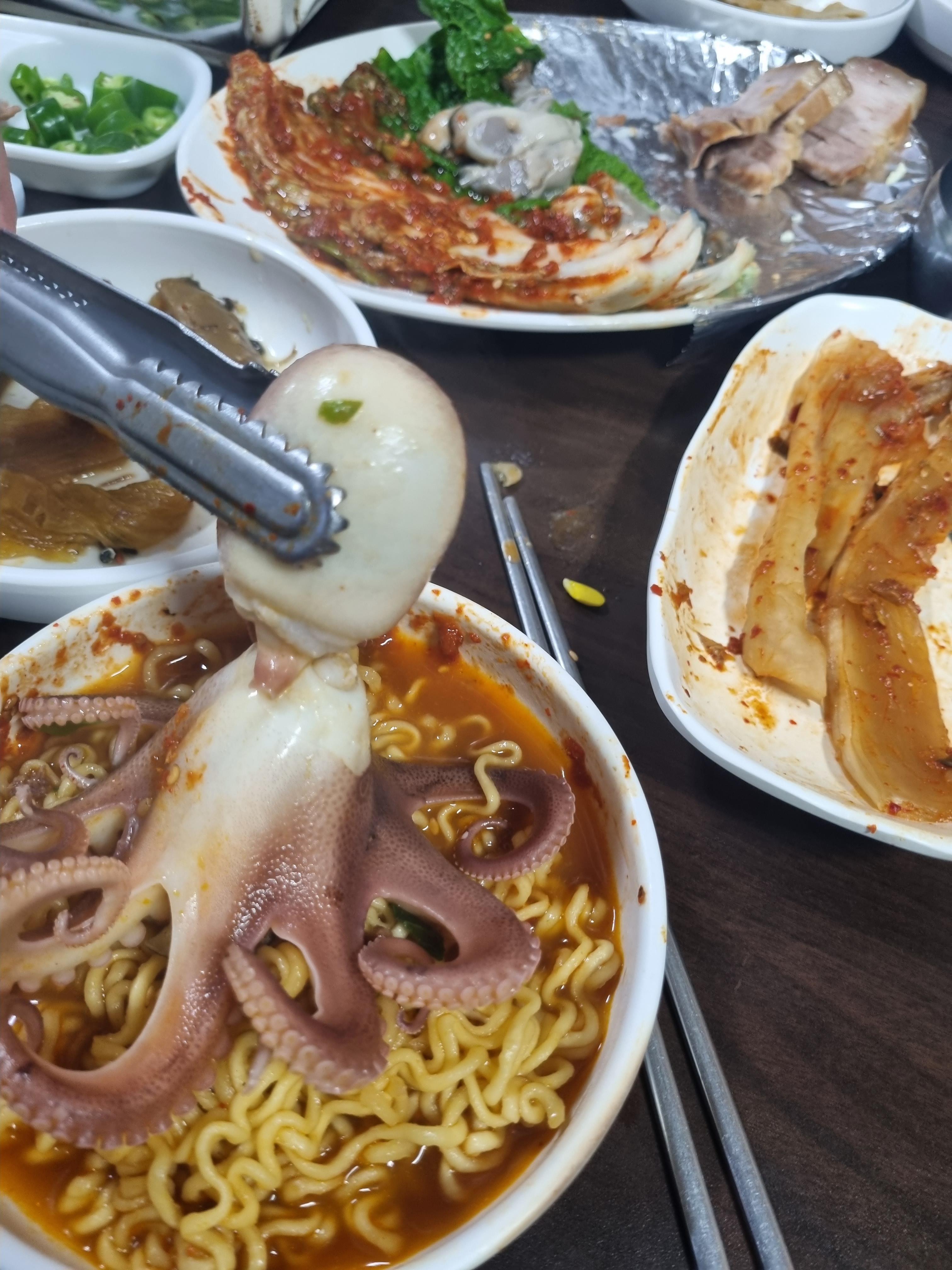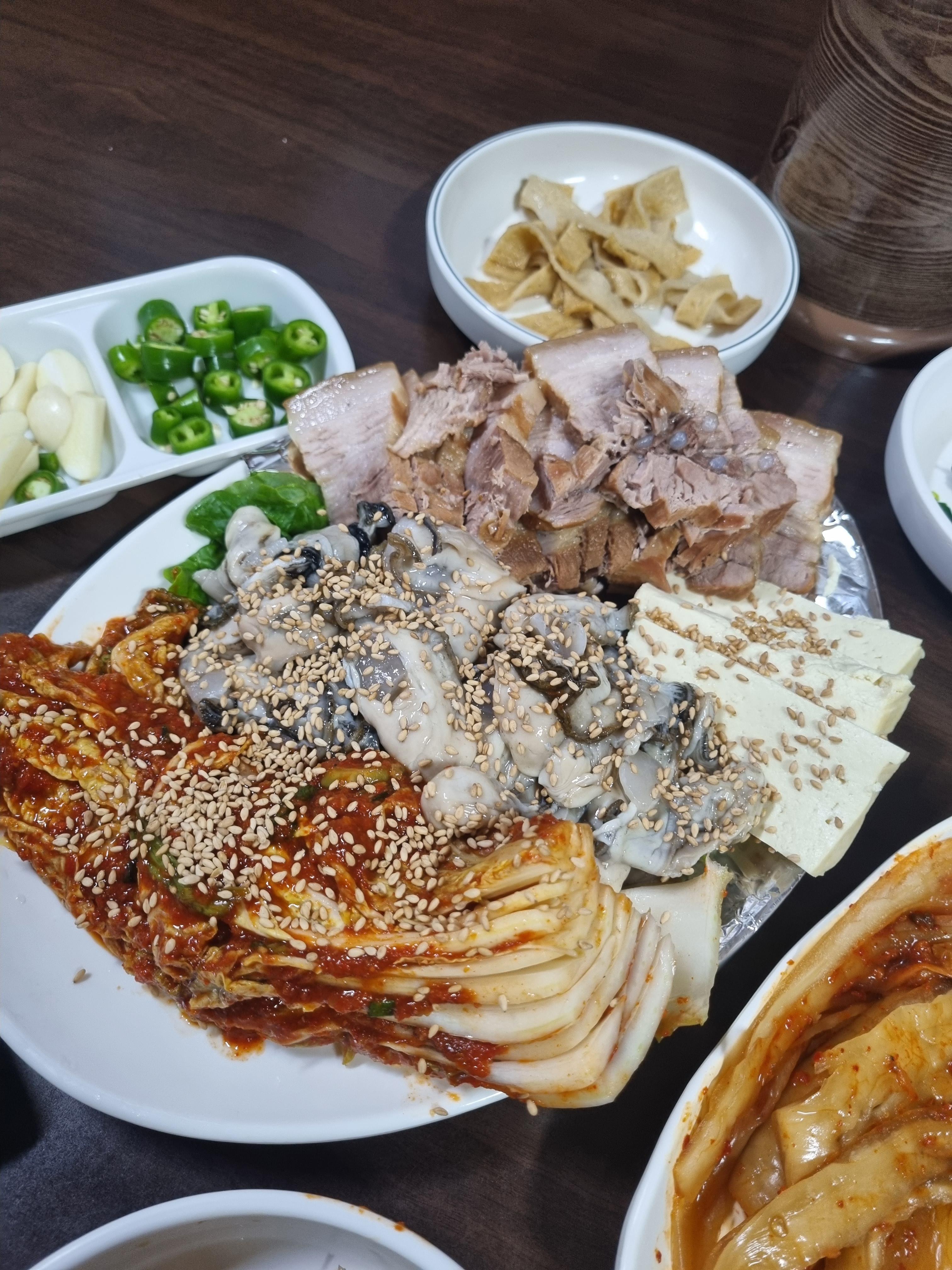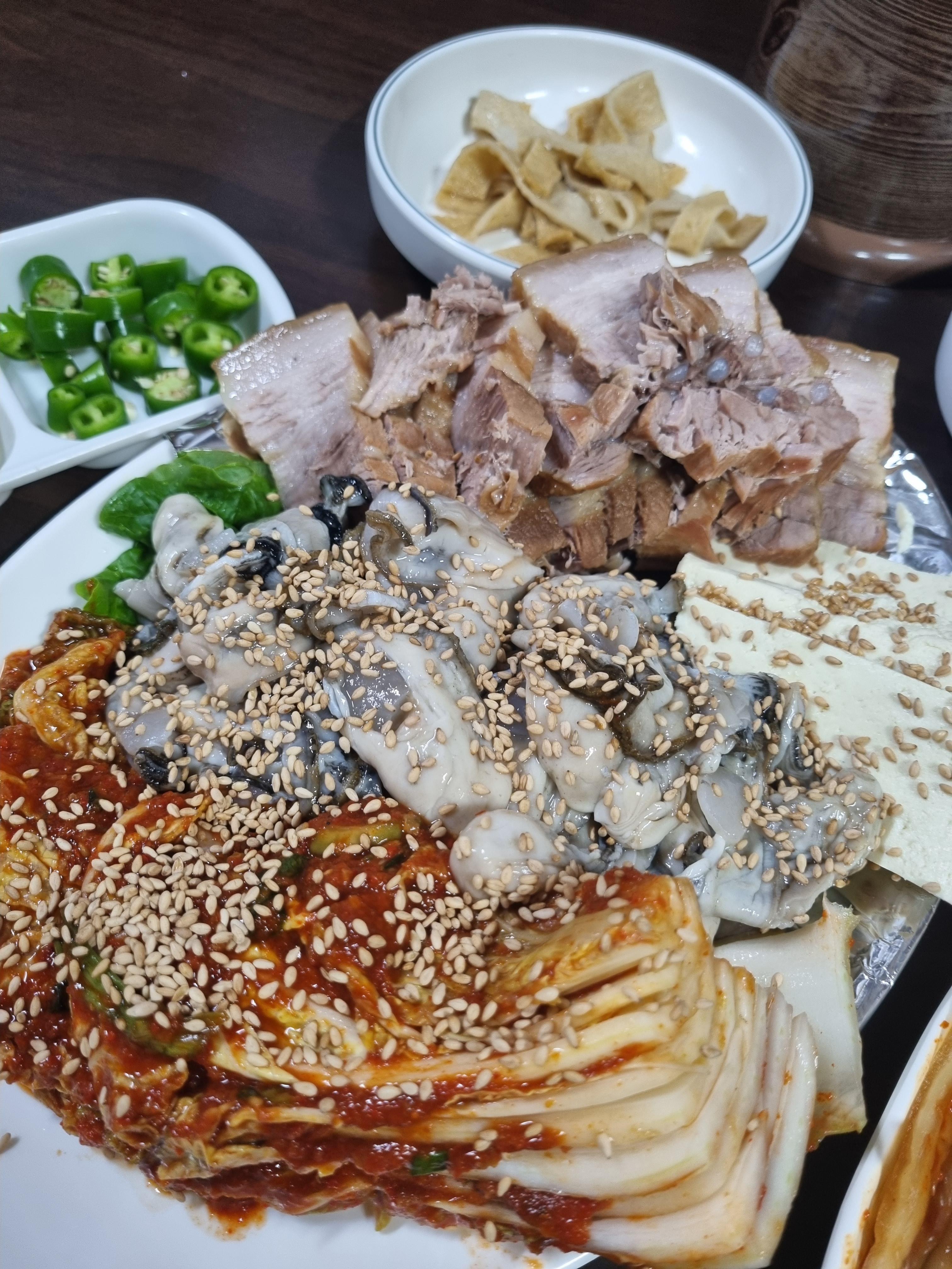 생굴 수육보쌈 해물라면