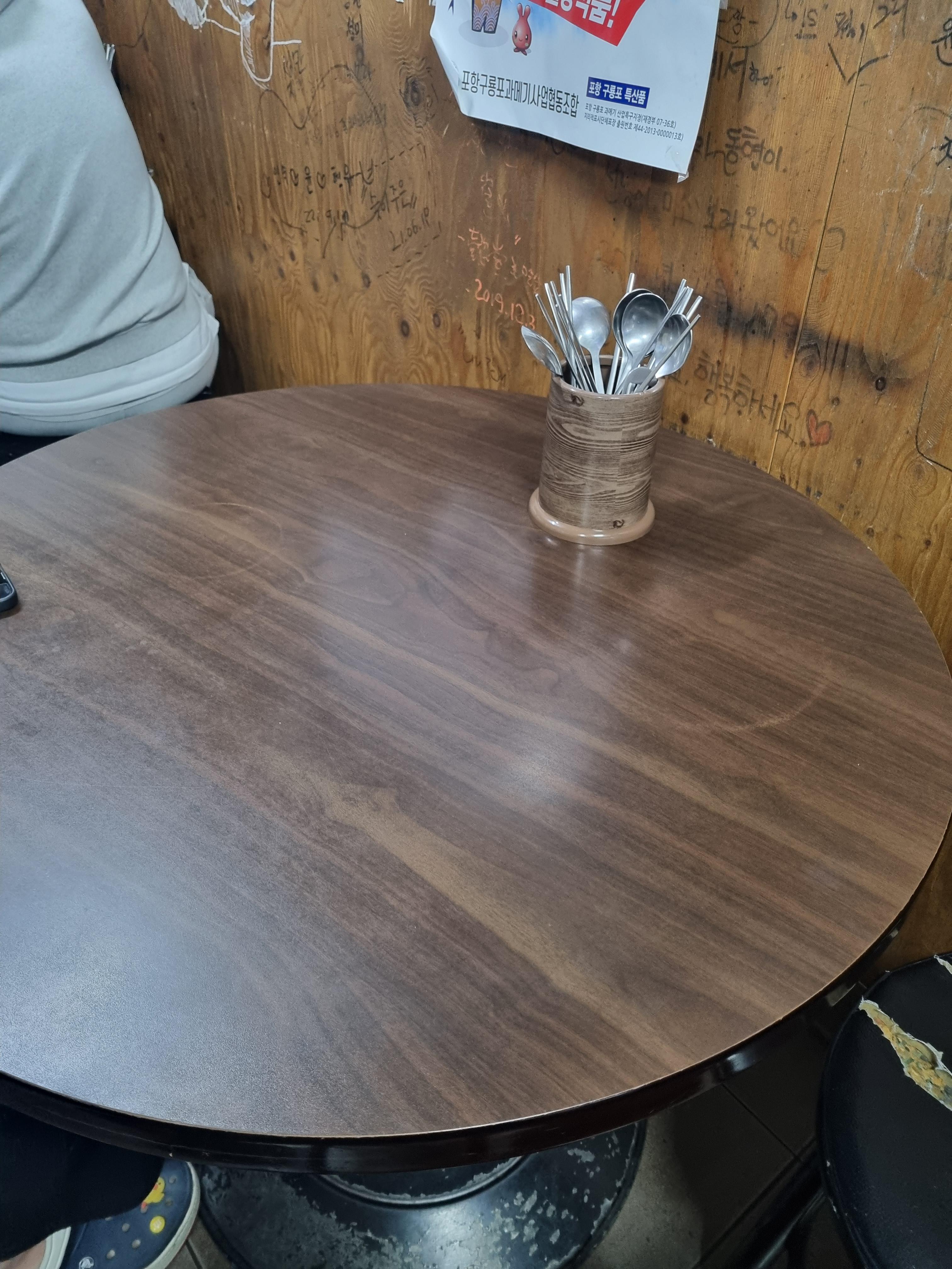 저녁 식사 시간 전에 갔는데요. 벌써 손님들이 자리는 잡고 있었고 다행히 자리가 있어서 바로 앉을 수 있었습니다. 식사 시간대에 가면 웨이팅은 기본인 맛집이니 참고하시고요! 실제로 먹다 보니깐 웨이팅이 시작되더라고요. 테이블은 원형 테이블로 6자리 정도 있었던 것 같습니다. 매장 내부의 전체적인 분위기는 전형적인 맛집 분위기 나는 포차 스타일의 정겨운 느낌이었습니다. 이모님이 혼자서 일을 하시더라고요! 사람을 따로 고용 안 하시나..?!