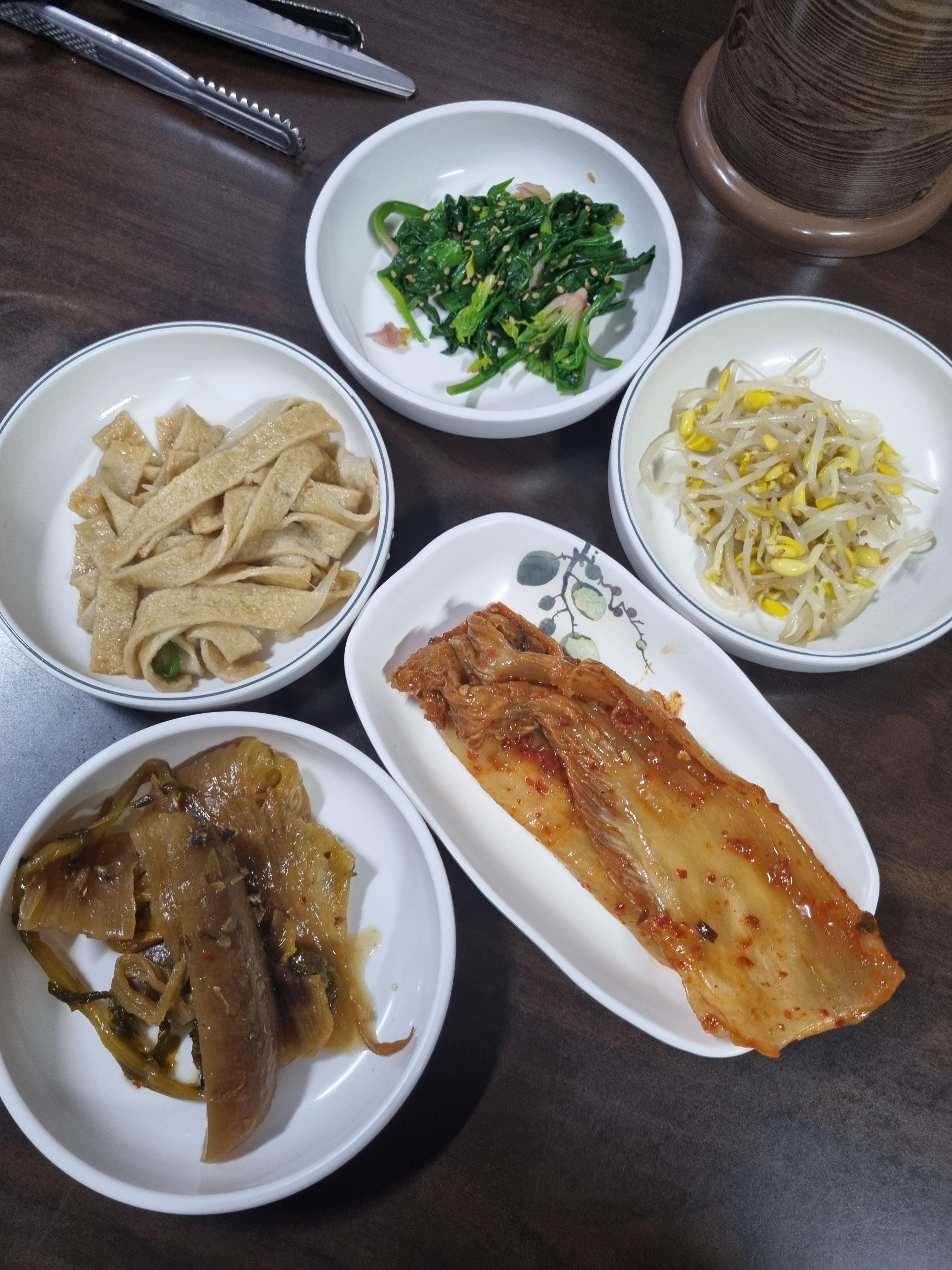 광주 구시청 맛집 소문난 쭈꾸미 기본 밑반찬입니다. 반찬을 먹는 순간 왜 맛집인지 바로 알게 됩니다. 어묵볶음, 묵은지, 시금치, 콩나물무침 왜 그렇게 맛집으로 소문이 났는지 반찬부터 고개가 절로 끄덕여집니다.