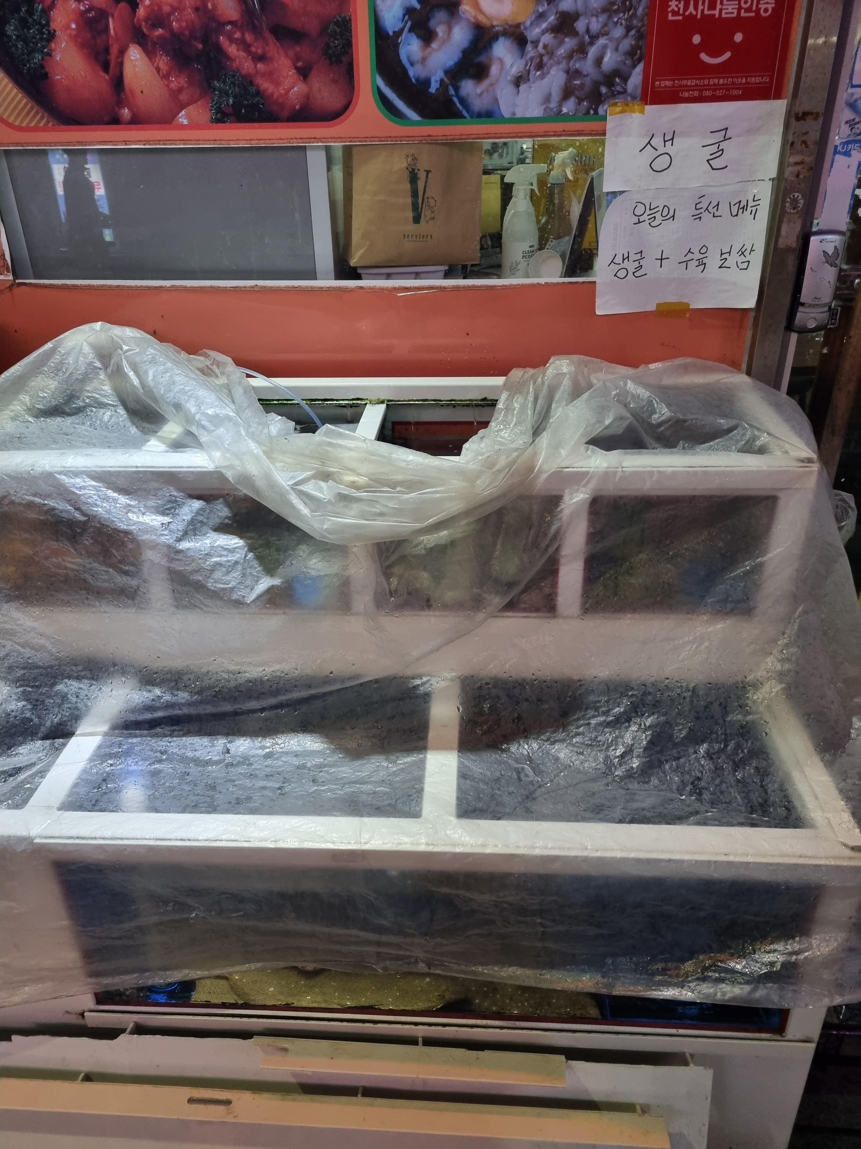 매장 바로 앞 수족관에 싱싱한 해산물들이 있는걸 볼 수 있습니다.