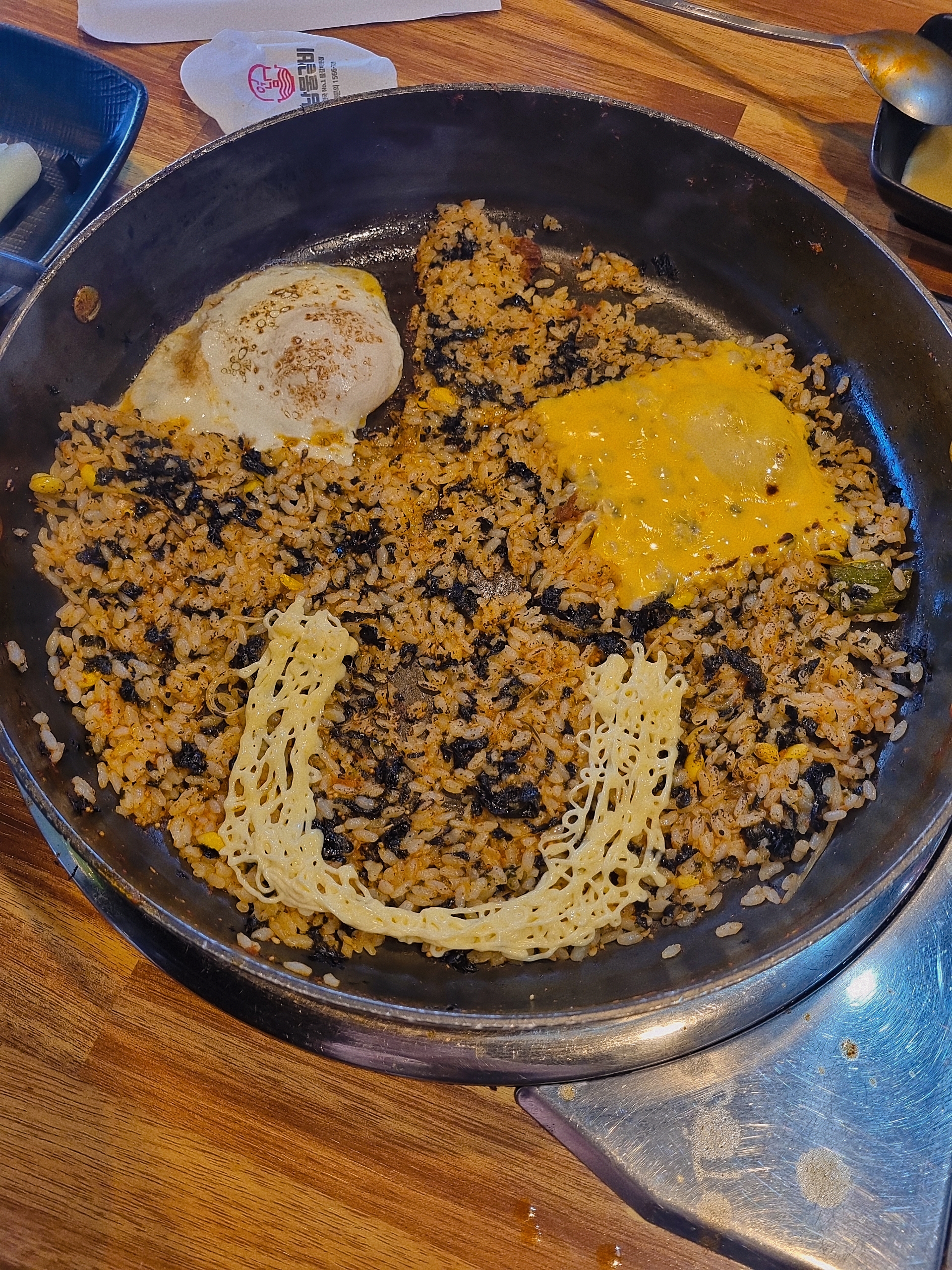 마무리는 볶음밥을 무조건 먹어줘야 합니다. 블로그 리뷰들 보면 다른 건 몰라도 이 볶음밥은 무조건 맛있다는 평이 압도적으로 많았습니다. 물갈비를 어느 정도 먹다가 원하실 때 볶음밥을 해달라고 요청하면 직원분이 알아서 척척 만들어서 오십니다. 센스 있게 치즈와 마요네즈, 계란으로 눈과 입을 그려주셔요. 물갈비 양이 정말 많아서 볶음밥은 한 개만 했는데 정말 배부르고 딱 좋게 먹고 나왔습니다. 점심특선 메뉴에는 소갈비 대가 빠져있으니 이점은 착오 없으시길 바랍니다. 하지만 그럼에도 불구하고 양 많고 맛있다는 점! 샤브샤브와 다른 특별한 물갈비를 원하신다면 추천해 드려봅니다.
