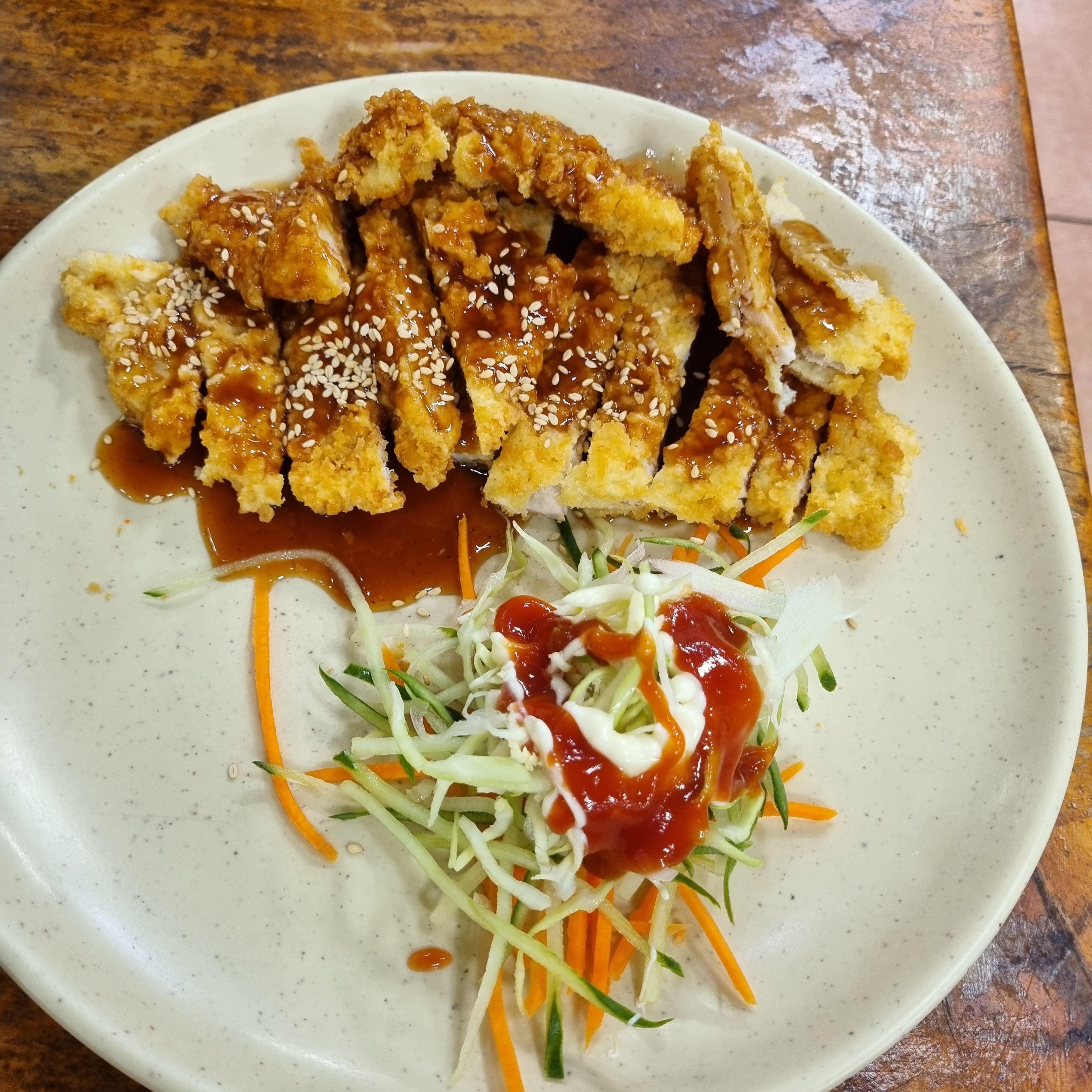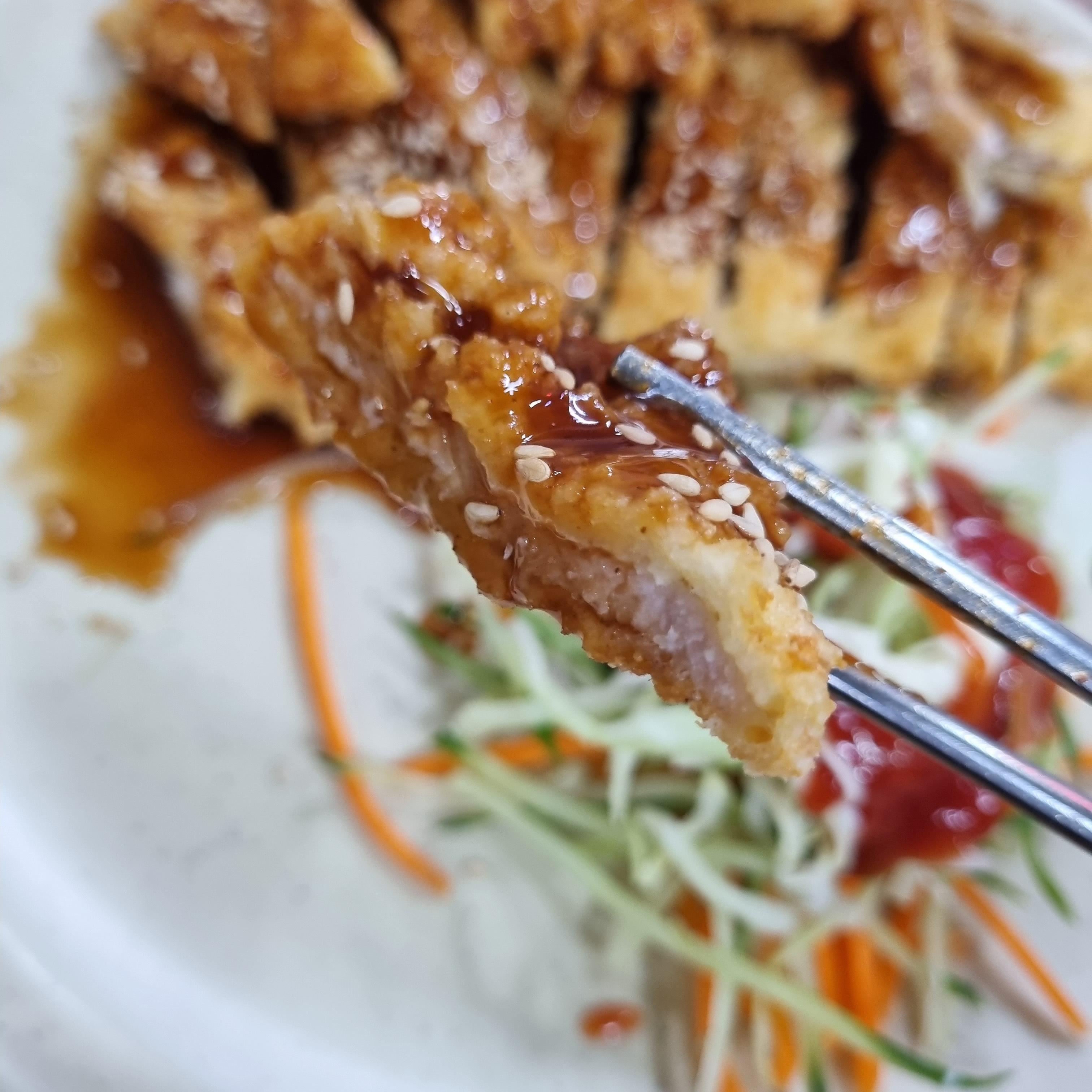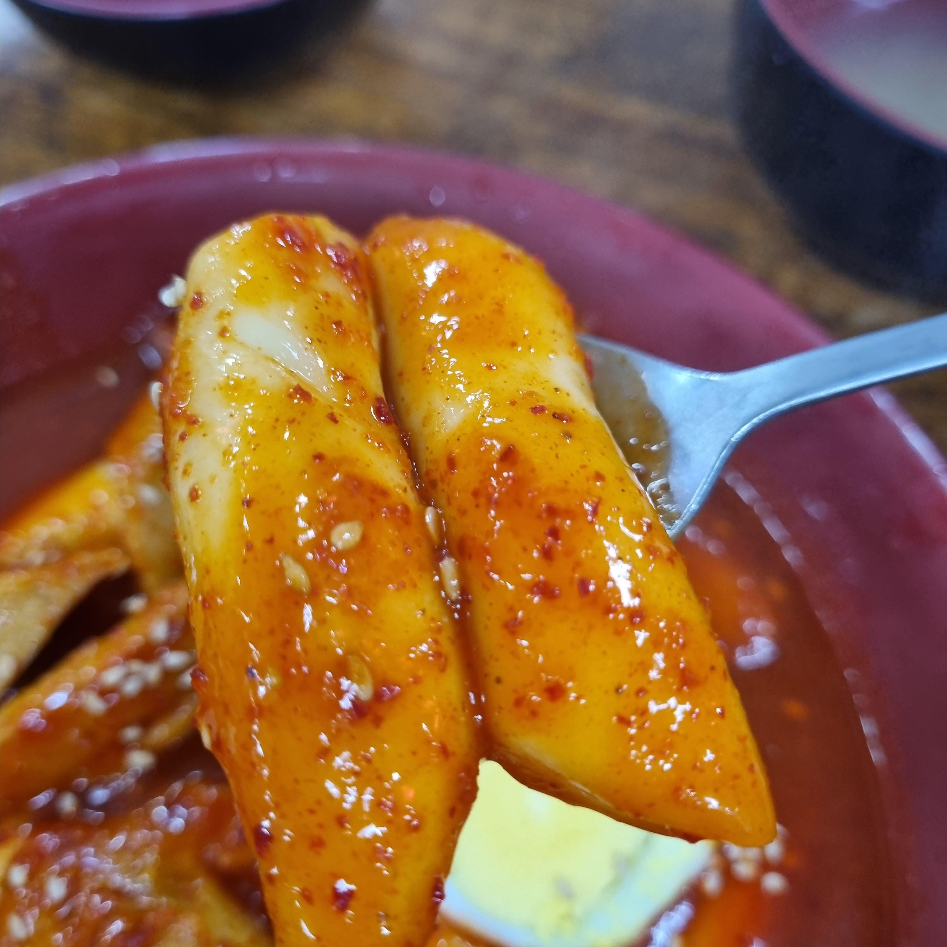 떡볶이입니다. 개인적으로 가장 맛있었던 메뉴!! 저는 학교 앞 분식에서 먹었던 달짝지근한 맛의 떡볶이를 참 좋아했었는데요. 딱 그 맛이더라고요! 떡에 소스도 정말 잘 베여 있어요. 떡도 정말 쫀득쫀득 식감이 너무 좋아요. 뭐 맵거나 그러지 않으니 돈까스랑 콜라보로 입에 쑥쑥 들어갔답니다.