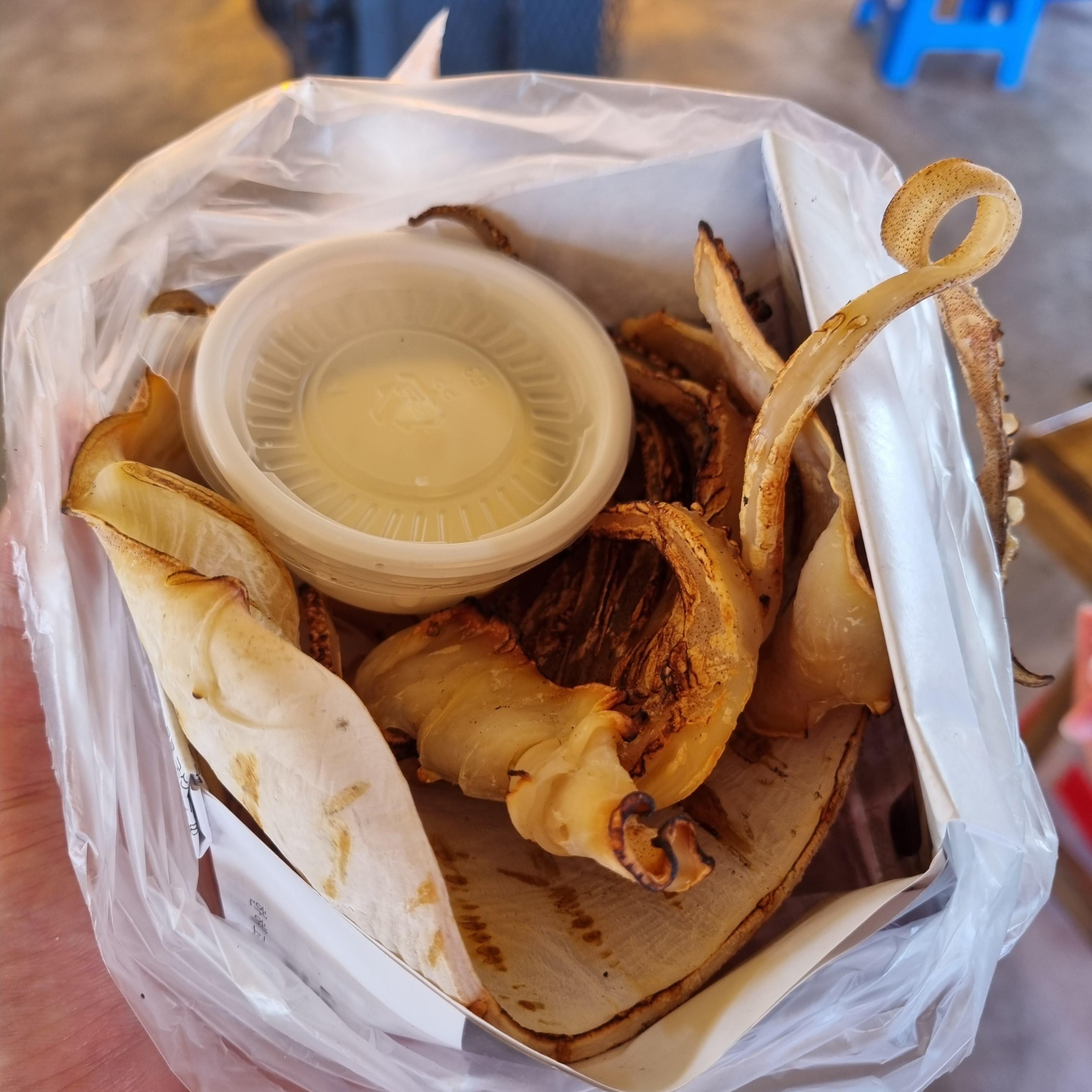 고소한 오징어 냄새가 코를 때리는데 너무 향기로워요.