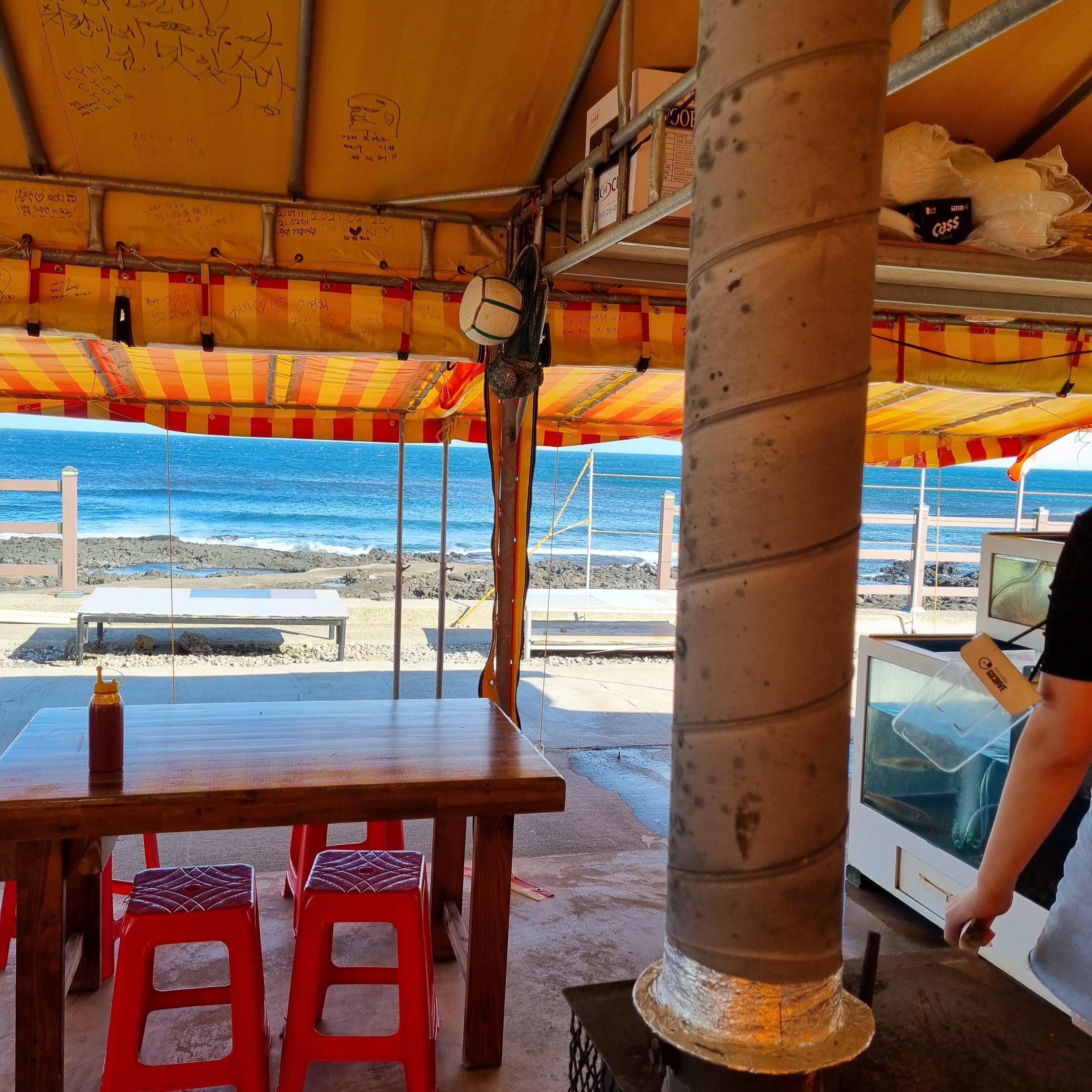 이렇게 바로 앞에 바다를 두고 먹는 거에요!