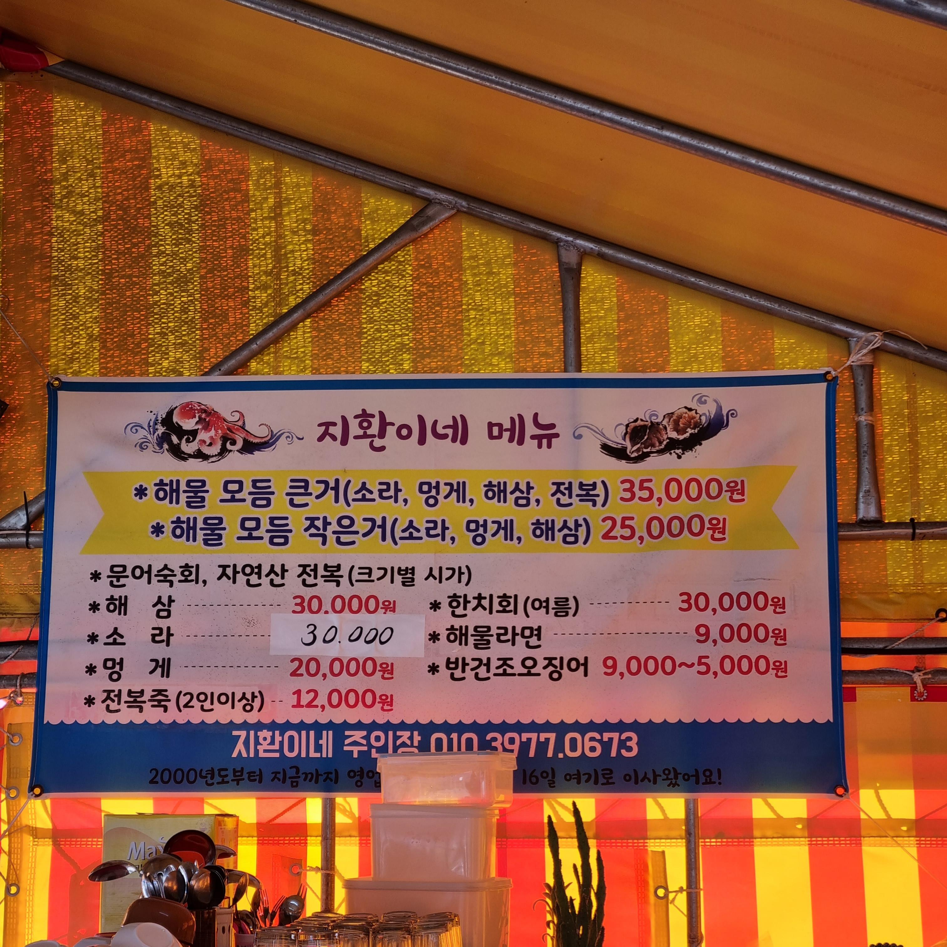 제주 성산 맛집 추천 지환이네 메뉴판이에요.