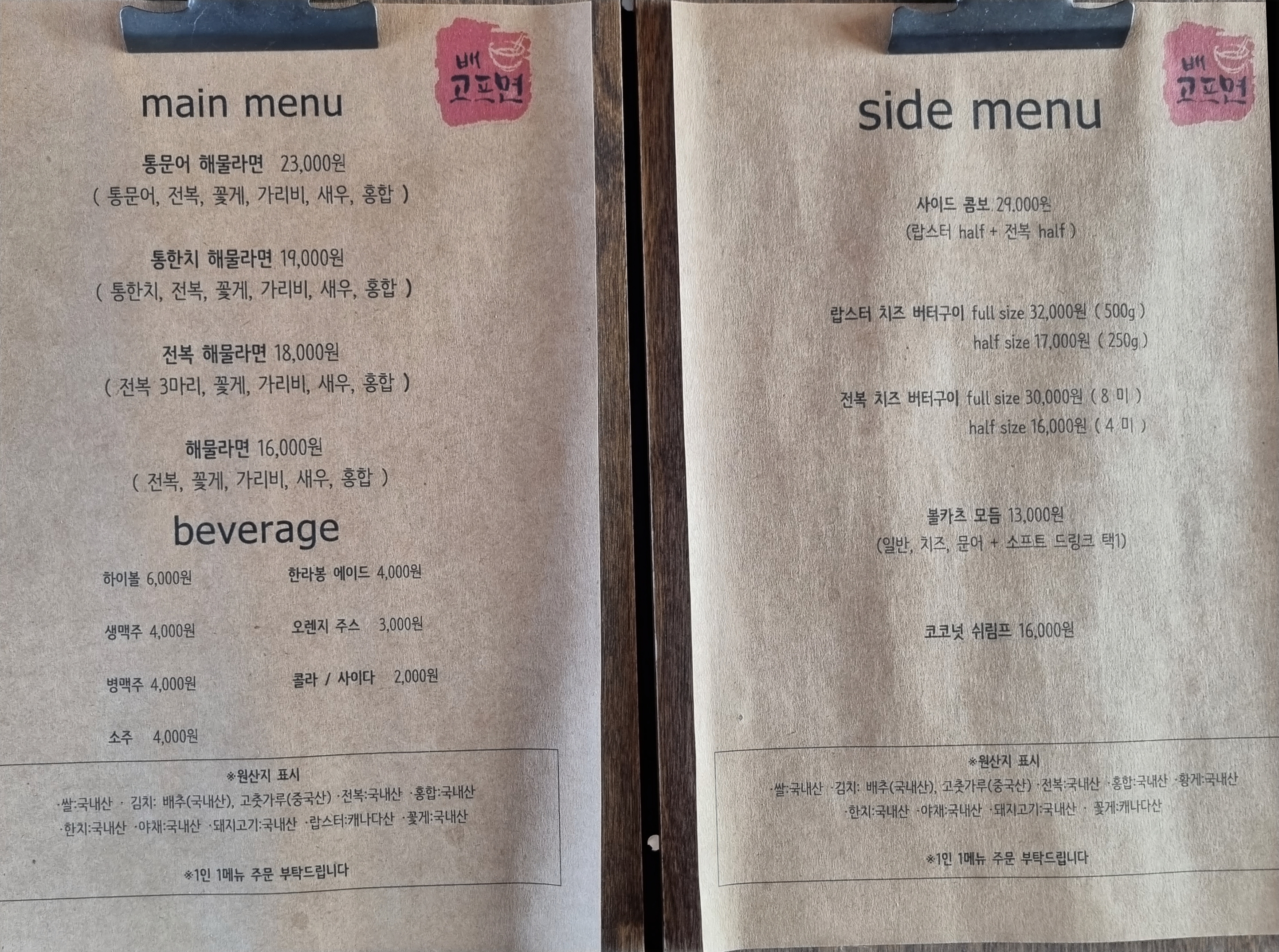 메뉴판