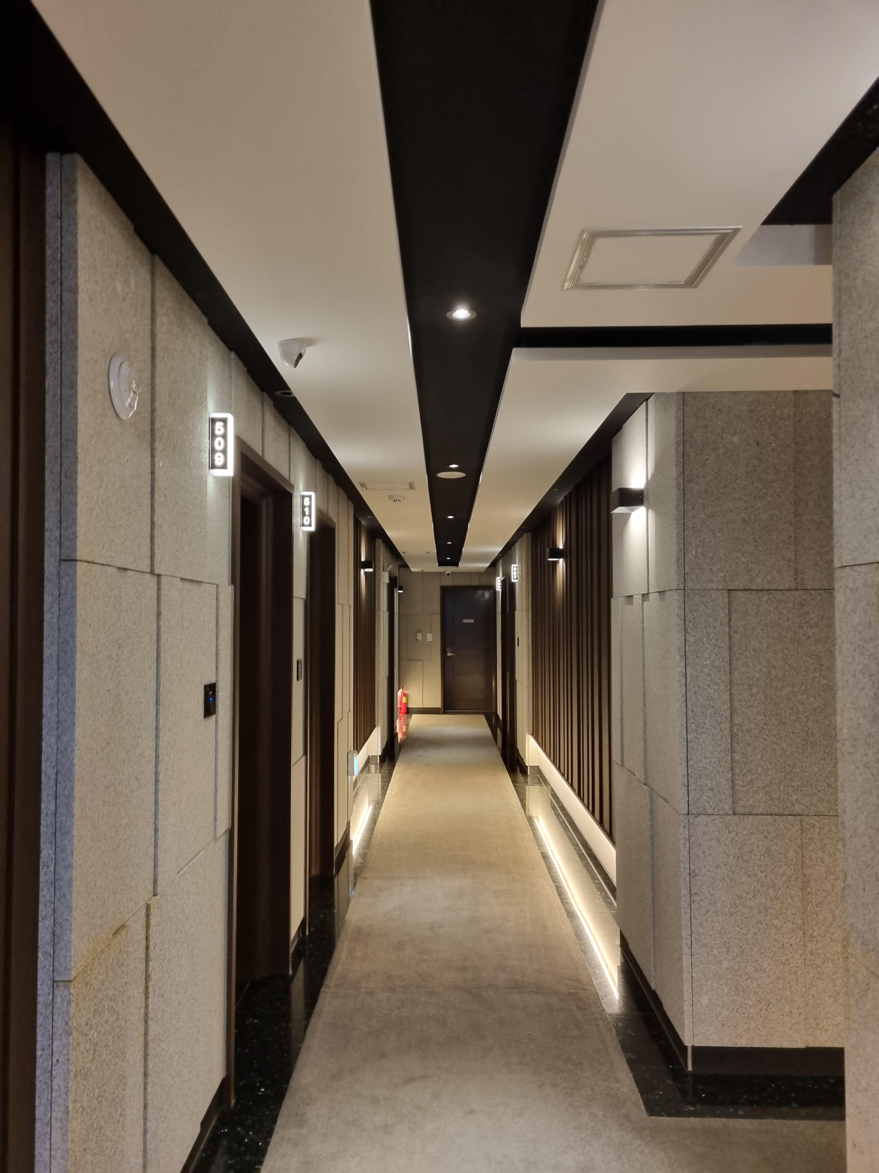 첨단 호텔 추천 하이브인호텔 객실에 들어가기 전부터 여느 등급 높은 호텔 부럽지 않은 깔끔한 인테리어가 반겨주더라고요. 엘리베이터를 타는데 살짝 오래된듯해 보이는듯했는데 여기가 신축은 아니고 원래 있었던 건물에 전부 다 뜯어고치고 리모델링을 공격적으로 하셨나 봐요.