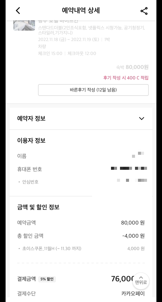 저희는 야놀자에서 쿠폰도 적용해서 이렇게 저렴하게 예약했습니다. 스탠다드더블 7만6천원으로 조식 무료, 넷플릭스, 공기청정기, 스타일러까지 다 있습니다. 밑에 조식 설명이 있겠지만 진짜 여기 조식 짱짱...!!