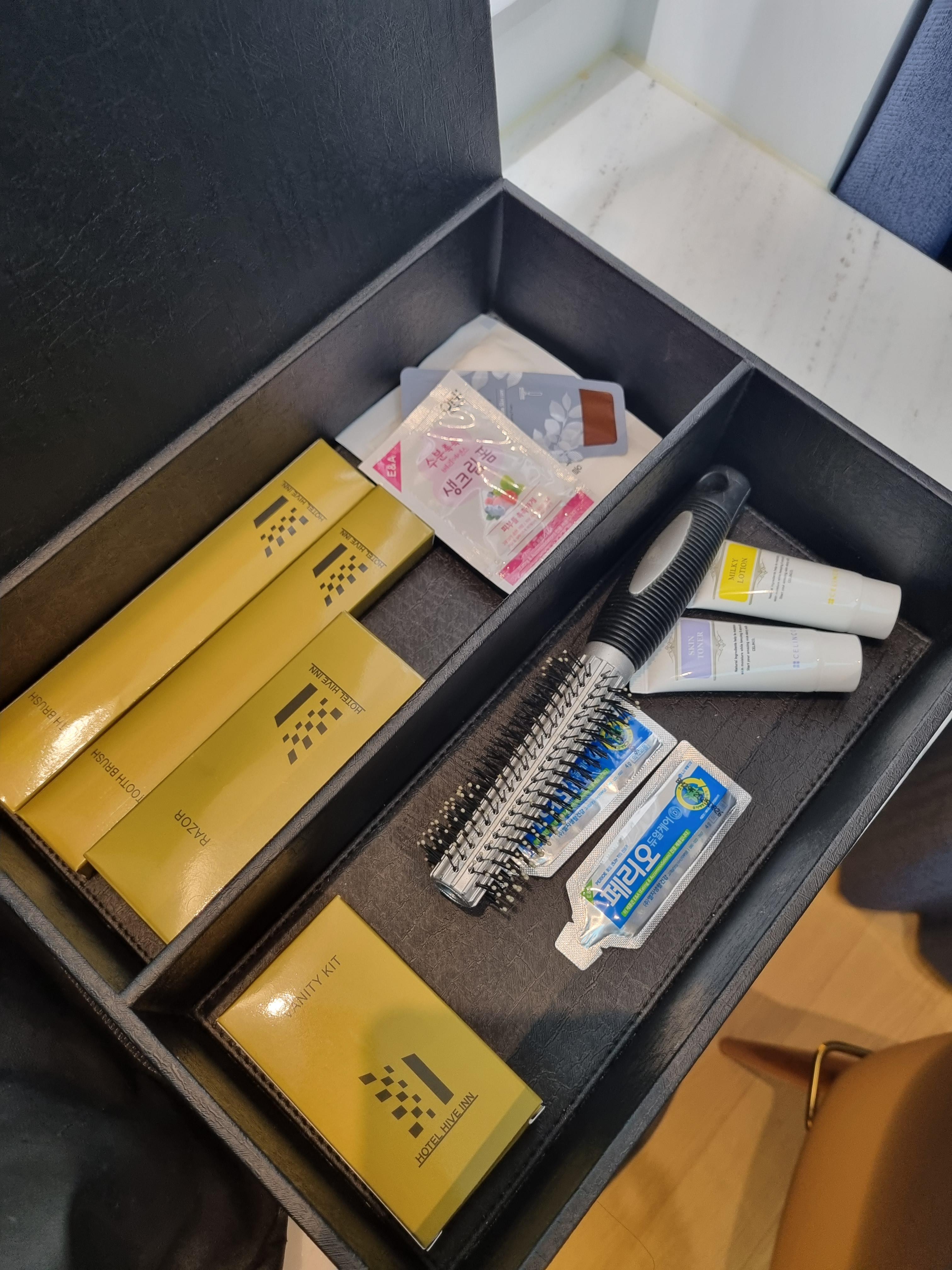 칫솔, 치약, 클렌징폼, 머리빗, 로션, 스킨 등 기본적인 것들이 준비되어있습니다.