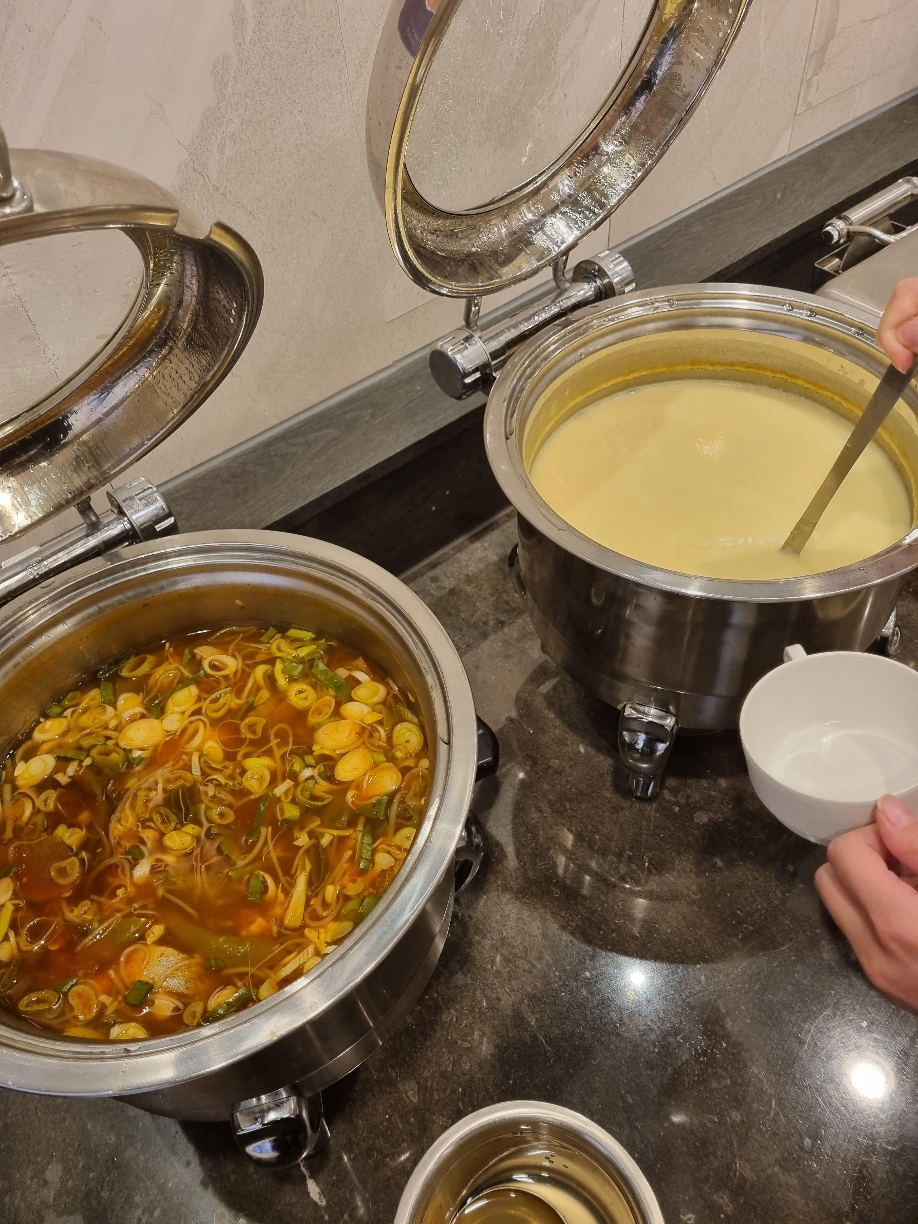 전날 술 마신 사람들을 위해서 해장하라고 제대로 콩나물국까지... 수프도 정말 맛있었어요! 보니깐 직원분이 계속 메뉴들을 신경 쓰시면서 부족해지면 바로바로 리필해주시고 정리하시고... 조식의 모든 것에 진심인 게 느껴졌답니다. 후식으로 카스테라빵과 와플, 식빵도 있었어요. 그 옆으로 샐러드랑 과일까지 있었는데 사진을 찍지 못했습니다.