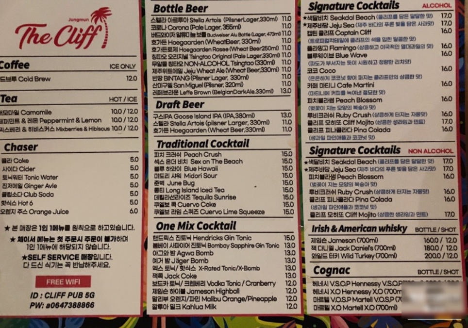참고로 더클리프는 클럽처럼 정식으로 춤을 출 수 있는 업소가 아니더라고요.