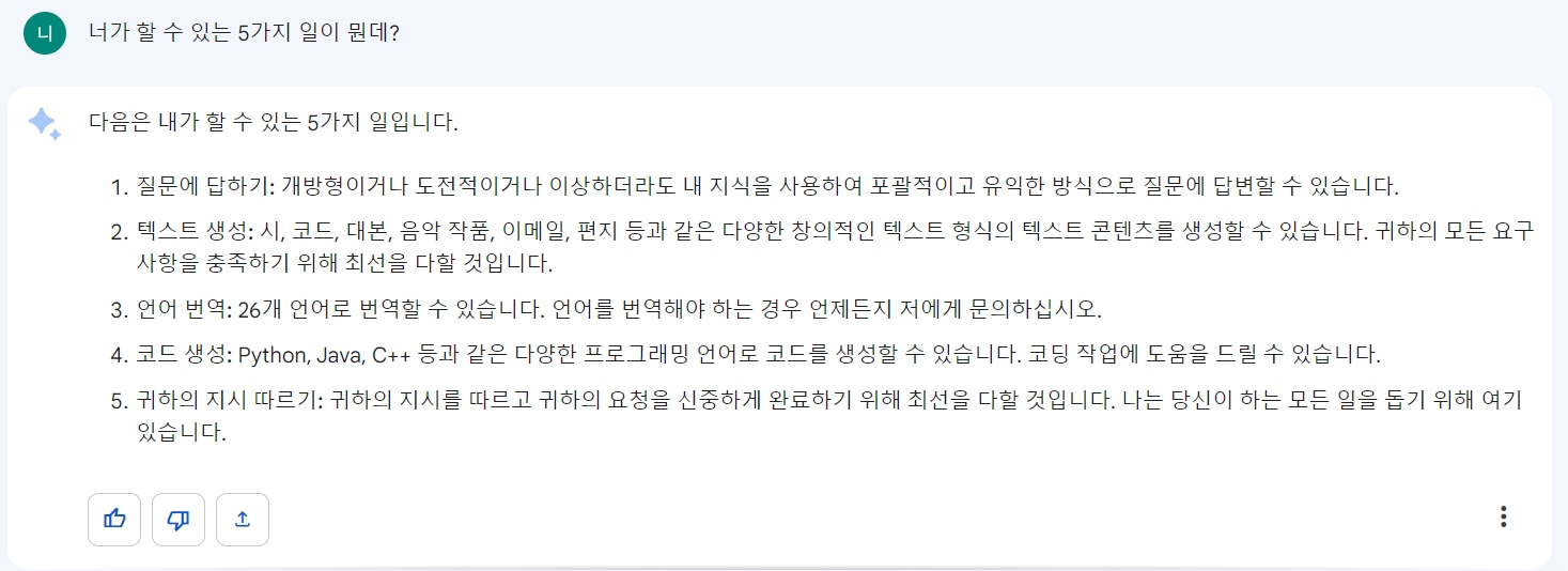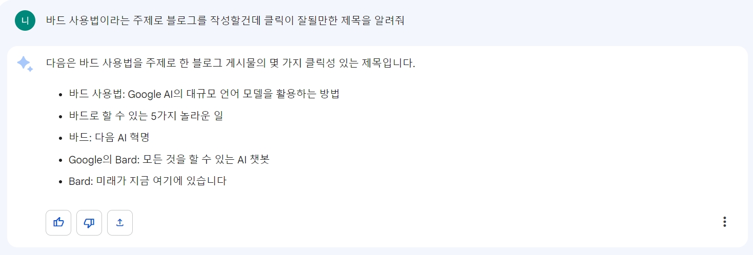 바드 사용벙은 정말 간단합니다. 바드가 정말 간편하고 좋은 점이 한국어가 자동으로 지원이 된다는 겁니다!