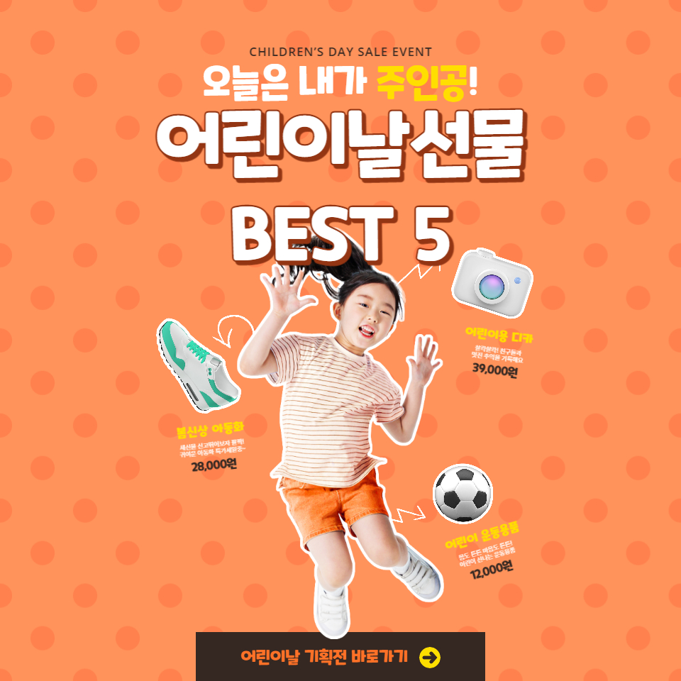 추천하는 사이트에 들어가셔서 어린이날 기획전을 둘러보셔도 도움이 될 듯합니다!