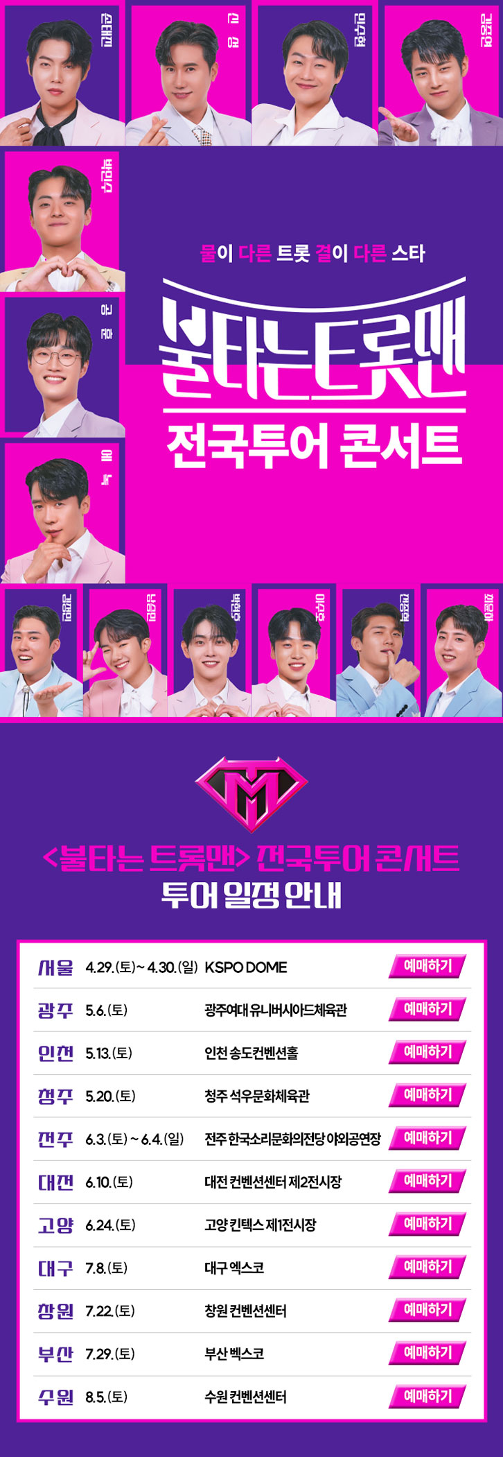 제주도여행이나 콘서트, 디너쇼, 대한민국을 뜨겁게 달군 미스터트롯, 불타는 트롯 맨 콘서트도 강력추천!!!