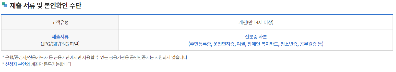 가전구매지원사업 계좌증록 제출서류 주민등록증, 운전면허증, 여권, 장애인 복지카드, 청소년증, 공무원증